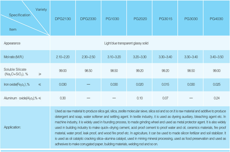 Standard compliance: GB/T4209-2008 "Industrial Sodium Silicate",Enterprise Standard Q/0213DYP 002-2016 "Industrial Sodium Silicate".